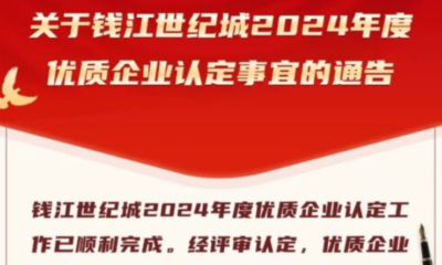喜訊!杭州恒領科技有限公司獲評錢江世紀城 2024 年度優質企業